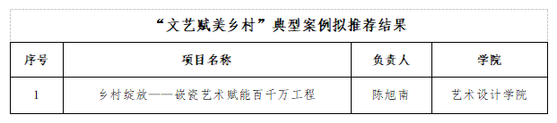 根据《广东省教育厅办公室转发农业农村部办公厅等七部门关于开展“文艺赋美乡村”典型案例征集推介的通知》要求,学校组织开展了“文艺赋美乡村”典型案例征集工作。经各单位提交材料、教务处审核,现将拟推荐结果予以公示。